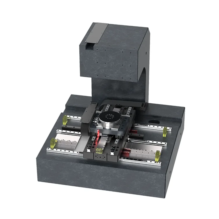 Equipada con codificadores lineales de alta resolución (resolución de 0,05 μm) y motores de torsión de accionamiento directo para el eje Theta, la plataforma logra una precisión de posicionamiento repetido de ±0,5 μm (X/Y), una precisión absoluta de ±1 μm (X/Y), una precisión de posicionamiento del eje Z de ±2 μm y una precisión angular de 0,001° en el eje Theta. Esto garantiza una alineación precisa entre las matrices de oblea y las sondas de prueba/óptica de inspección, eliminando errores inducidos por desalineación en la caracterización eléctrica y la inspección óptica.